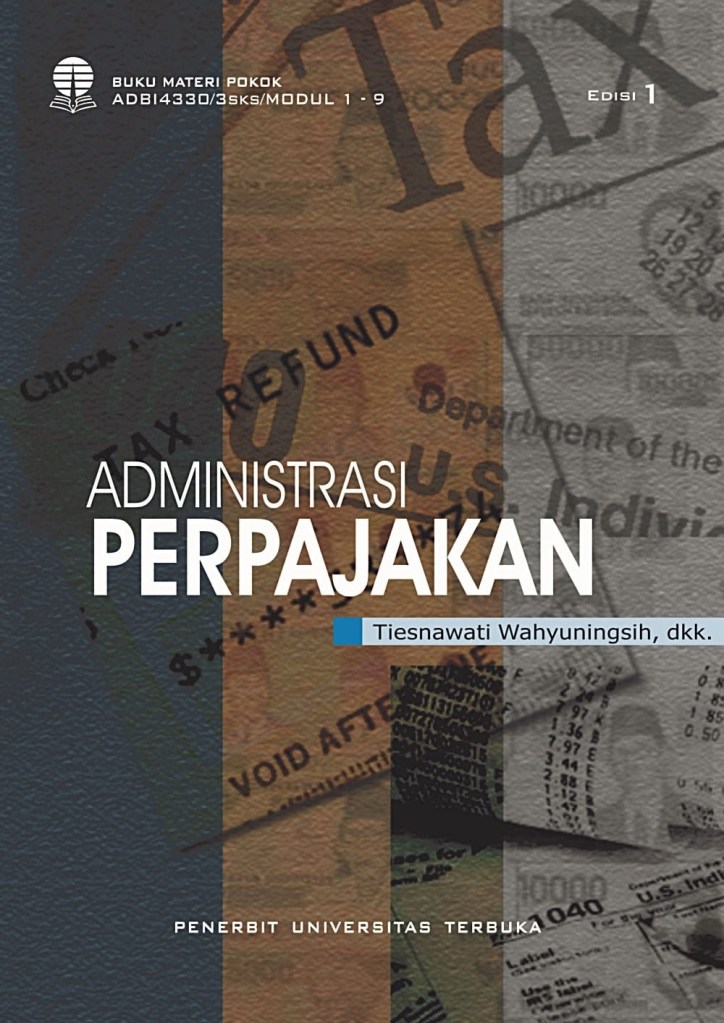 ADBI4330 Edisi 1 Administrasi Perpajakan. Berdasarkan informasi di katalog kurikulum modul ini bisa untuk mata kuliah ADBI 4330, FSAB 4401. Jika mau cek katalog kurikulum KLIK